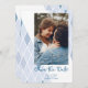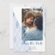 Blått Elegant Abstrakt Fotosofistikerad Bröllop spara datum med kuvert.