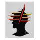 Ljusa gulter, orange och röda band kommer från silhuetten på ett humant huvud i den ursprungliga abstrakten av Richard H. Fay.