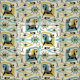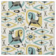 Min ursprungliga vektorbild av katter, kuber, stjärnblåsor, boomeranger, lozenges och mer i abstrakt i mitten av århundradet, i turkoser, guld, varmt grått och svart på benvitare/tan.