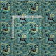 Min ursprungliga vektorbild av katter, kuber, stjärnblåsor, boomeranger, lozenges m.fl. i halvseklets abstrakt i stil, i skuggor av blått, grönt, grått och svart på teal.