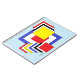 Den här geometriska abstrakten av Richard H. Fay har en uppsättning fyrkanter i det primära färgen av rött, blått och gult, samt svart och vitt.
