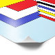 Den här geometriska abstrakten av Richard H. Fay har en uppsättning fyrkanter i det primära färgen av rött, blått och gult, samt svart och vitt.