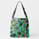 En livlig abstrakt i turkos-, teal-, orange-, röd orange, svart, vit, metallisk guld och grönt.