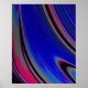 Denna unika poster har en abstrakt som är snabb och otydlig i mörk blått, magenta, svart och grått.