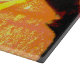 Den abstrakt grafiken på denna 15-tums x11-tums skärplatta skapades från ett originalfoto av HomeWare av regndroppar på en korallfabrik i handflatan. Fotodesignen är i soligt tropiskt färg, ljust gult, rosa, orange, terrakotta, blått och vitt.