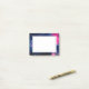 Fästande anteckningar med en vacker abstrakt design i rosa och blått. Vita stjärnor sprinklingade genom hela den här bilden av cosmos. Trippy och coola. En rektangel med ett svart gräns överst lager där du kan skriva inuti.