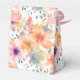 Söt vattenfärgsblommor i stänk i rosa, persika, lila och många subtila nyanser, accentuerade med små löv, gör detta till en mångsidig utskrift av firande. Sömlös utskrift.