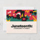 I detta moderna och abstrakt hundrasjuttonde helgdagskort högtidlighåller man minnet av den 10:e juni, som hedrar emancipationen av förslavade afrikanska amerikaner. De pulserande och dynamiska formerna i färg i den panafrikanska flagga skapar en synligt slående representation av frihet och firande. Utformningen ger en contemporary till det tionde temat i juni, en perfekt för dem som vill erkänna denna viktiga historiska milstolpe med ett unikt konstnärligt fläkt. Den fungerar som en kraftfull symbol för framsteg, uthållighet och den pågående strävan efter jämlikhet.