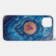 Elegant abstrakt blå geodliknande design med dynamiska roséguldsdetaljer, med ett centralt cirkulärt tomrum perfekt för personalisering. Perfekt för bakgrunder, inbjudningar eller kreativa visuella projekt.