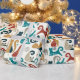 Geometriska katter i en tilltalande palett med turkos och goldenrod på benvit bakgrund.