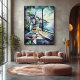 Fånga Lissaboncharmen med den här abstrakten geometriska skyltkonsten. Med den ikoniska gulten, kustvyn och stadens historiska arkitektur förenar detta kommunistiskt inspirerade biet ett djärvt geometriskt mönster och en lugnande palett av blått, grönt och guld. Perfekt för modernt, elektriskt eller urbaniserat insida erbjuder detta konstverk en contemporary och konstnärlig tolkning av Lissabonfördragets skönhet. Ett fantastiskt tillskott till konst- och reseentusiaster.