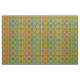 En levande geometrisk utformning av abstrakten med vibrerande gult, blå och röda toner som bildar ett symmetriskt mönster. Perfekt för konstnärliga bakgrunder, dekorativa projekt och grafiska designinspirationer.
