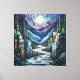 Abstrakt Geometric Moonlit Valley med River Canvastryck