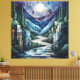 Upptäck ditt utrymme med det här hisnande geometriska landskapet i abstrakten. Med ett glödande fullt som kastar mjukt ljus över en serenflod som rullar genom en majestät, blandar detta konstverk naturskönhet med fet, kubikabstraktion. Gräs träd lush-grönt och skålade bergsmassiv av blått och lila framkallar djup och lugn. Perfekt för modernt och minimalistiskt insida är denna unika duk ett fantastiskt centrum för konst älskare och naturinspirerade dekorentusiaster.