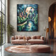 Upplev romantik i Paris med denna abstrakt geometriska skyltkonst. Med den ikoniska Eiffel Torn, ett glättande måne, och serensjöfloden som flankeras av lush träd och klassisk arkitektur, ger detta kubistiskt inspirerade biet Ljusets stad liv. Med sin harmoniska palett av grönt, blått och guld är denna grafik perfekt för modernt, elektriskt eller stadsininspirerat insida. Ett intressant tillskott till konst- och reseentusiaster som firar Pariss tidlösa skönhet.