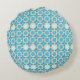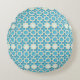 Abstrakt geometrisk blå och vit mönster rund kudde