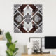 Denna slående abstrakta design blandar urban arkitektur med naturliga element i en speglad geometrisk layout. Snötäckta trädgrenar korsar suddiga röda tegelbyggnader och fönster, vilket skapar en dynamisk kalejdoskopisk effekt. De dämpade nyanserna av grått, brunt och vitt frammanar en vinterlig stadsbild, medan symmetrin tillför balans och modern sofistikation.