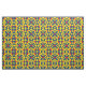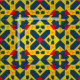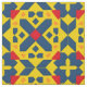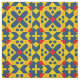 En livfull abstrakt geometrisk design med livfulla gula, blå och röda toner som bildar ett symmetriskt mönster. Perfekt för konstnärliga bakgrunder, dekorativa projekt och grafisk designinspiration.