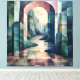 Tillägg sofistikering till din inredning med detta abstrakta geometriska mästerverk. Med en tornande valv som ramar in en lugn flod som slingrar sig genom skiktade bergstoppar, förenar kompositionen mjuka pastellfärger med djärva strukturella former. Det harmoniska samspelet mellan ljus och skugga skapar djup och intriger, vilket gör detta konstverk perfekt för moderna, minimalistiska eller boho-inspirerade interiörer. Idealiskt för konstelskare som söker innovativa designs som frammanar både lugn och förundran, förvandlar denna canvas väggar till fantastiska fokuspunkter.