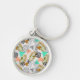 Abstrakt geometriskt tropiskt lövmönster rund silverfärgad nyckelring