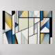 Geometriska former i nyanser av blått, gult och vitt flätas samman med svarta linjer och skapar en abstrakt glasmosaik full av harmoni. Kombinationen av kalla och varma färger, tillsammans med precisionen i formerna, resulterar i en komposition som förmedlar sofistikation och balans. Perfekt för miljöer som söker modernitet och en konstnärlig touch, förvandlar detta konstverk varje utrymme till ett visuellt vackert scenario.