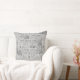 Ett konstnärligt mönster baserat på ett spetsmönster täcker denna grå dekorativa kastkudde.