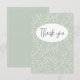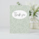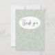 Sagegrön akvarell abstrakt blad mönster och matchande bakgrund med “Tack” i modern typografi.