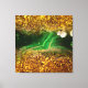 Modern abstrakt-inslagen canvas-utskrift med en faux-guld-metallfolie och abstrakt av grönt-bakgrund.