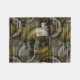 Abstrakt grunge, monokrom brun, geometriskt mönster. Cirklar, linjer, fyrkanter och skavanker på en gråbrun bakgrund.