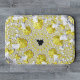 Den här produkten har en abstrakt digital grafik i guld och vitt med svart Mandelbrot i mitten.