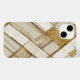 Elegant abstrakt design med korsande geometriska former i guld- och beigetoner, markerade med gnistrande glitterdetaljer som skapar en lyxig och modern estetik.