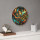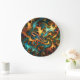 Abstrakt Guld Teal Orange Flames Stor Klocka