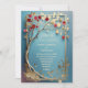 Det här bröllop-kortet har en slående utformning med ett gyllene ram som är sammanflätat med ett vackert utformat träd gren, försedd med guldfärgade löv och pulserande röda äpplen. Bakgrunden övergår från ljusblått överst till ett något mörkare blått vid grund och skapar en stillastående inställning för elegant. Konsten stil förenar modern minimalism med inflytande från Art nouveau, kännetecknat av dess gigantiska kurvor och ekologiska former. De detaljerade motiven gren och löv, tillsammans med de feta röda äpplen, väcker en känsla av naturskönhet och tidlös romantik, skapar detta kort som ett val av perfekt för ett bröllop. Anpassa texten om namn och detaljer om bröllop. Du kan ladda ned kortet till din mobila enhet eller dator. Jag designade kortet med hjälp av generativ hjälp.