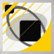 Gult linjer, böjt hörn, grått ovaler, svarta fyrkanter, benvit bakgrund. #abstrakt