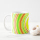 Den här färgstarka mugg har en abstrakt design i en palett med vår färg med namn och ett monogram i matchande grönt- och orange-skuggor.