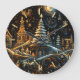 Abstrakt: Julbyn Chalk Teckning Night Himmel Stor Klocka