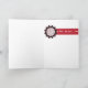 Julkort med en abstrakt svart, vit och röd julstjärna med prickar på omslaget och texten "KÄRLEK, FRED, GLÄDJE" på insidan. Stick ut med detta moderna och unika julkort.
