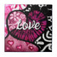Abstrakt Kärlek Heart Rosa Blommigt Polka dots Bla Kakelplatta