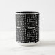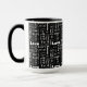Kaffet kärlek mugg i svart och vit abstrakt. Vit brev och svart bakgrund.