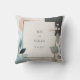 Ge din fest en touch av hög design med denna abstrakta konstnärliga botaniska kastkudde. Den unika konsten visar en övertygande kontrast mellan mjuka, organiska former och djärva geometriska block i en sofistikerad färgpalett av dammig rosafärg, dov sage och mörk skifferblå. Den centrala delen är en ren fyrkantig ram med en enkel, mörk kant, placerad mot den skiktade bakgrunden. Stilisierade eukalyptusblad och ömtåliga bärgrenar i kalla och varma toner svämmar över i utrymmet och mjukar upp de strukturerade elementen. Den övergripande estetiken är modern, konstnärlig och trendig, vilket gör den till en fantastisk statementbit. Denna kudde är perfekt för att lägga till en sofistikerad, galleriliknande accent till en modern vigselmottagning, skapa en förfinad ton för en vinter- eller höstfest, eller förhöja den excentriska inredningen på en mottagning i boutiquestil. Den fungerar också vackert som en unik, konstnärlig accent för ett modernt