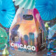 Abstrakt konst med Chicago-silhuett Presentaskar