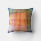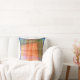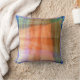 Den ursprungliga abstrakta designen på denna 16-tums Dekorativ kudde är gjord av ett originalfoto av ZoeSPEAK. Det föreslår en bild av ett landskap genom ett fönster. Gräns är i blå nyanser och insida är i skuggor av orange och grönt med höjdpunkter för blekens gult och rosa. Det finns linjära band med hål slagit i dem som sprider korsningar i utformningen.
