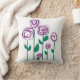 En kudde med abstrakta blommor som ser ut att vara broderade på kudden. Detta skulle vara bra i ett flickrum.