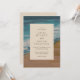 Modern bröllopsinbjudan med din händelseinformation över en abstrakt kustbakgrund.