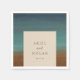 Moderna napkins i bröllop med namn och bröllop-datum över en abstrakt kustbakgrund.