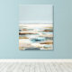 Ge in känsla av lugn och öppenhet i ditt rum med detta abstrakta konstverk från kusten. Med mjuka blå toner, sandiga neutrala nyanser och skiktade texturer fångar detta verk havets fridfulla rytm i en modern, målerisk stil.
