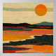 Konstverk som skildrar ett abstrakt landskap i varma nyanser med en nedgående sol, vilket skapar en lugn och minimalistisk design. Kompositionen blandar textur med enkelhet och frammanar en känsla av lugn och konstnärligt uttryck.
