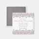 I spara datum magneter finns en lavender, viskare gräns i abstrakten mönster. bröllop-uppgifterna är skrivna i modern form.