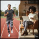 Fashionerbara kvinnomodeller som slår svart och vit abstrakt, ett måste för var och en som söker unika och snyggt aktiva kläder.
