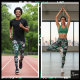 Fashionerbara kvinnomodeller som slår svart och vit abstrakt, ett måste för var och en som söker unika och snyggt aktiva kläder.